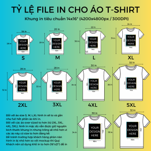 Các kích cỡ ở trên là dành cho áo T-shirt in tại WTY-TRAN. Đối với các loại sản phẩm khác, hãy cố gắng luôn luôn sử dụng đúng tỷ lệ chuẩn 4200×4800 ở 300DPI (tương đương 14 inch x 16 inch) để hình in của bạn luôn được đẹp nhất.